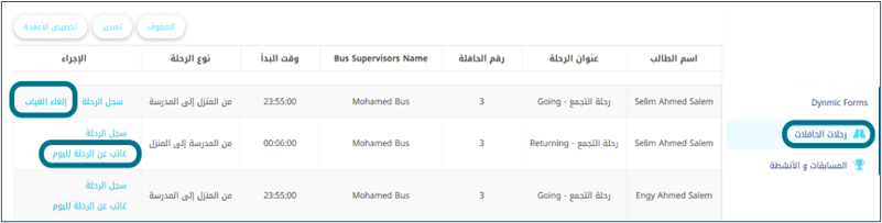 - • سيتم إضافة إجراء جديد يُسمى "غائب عن الرحلة لهذا اليوم".
