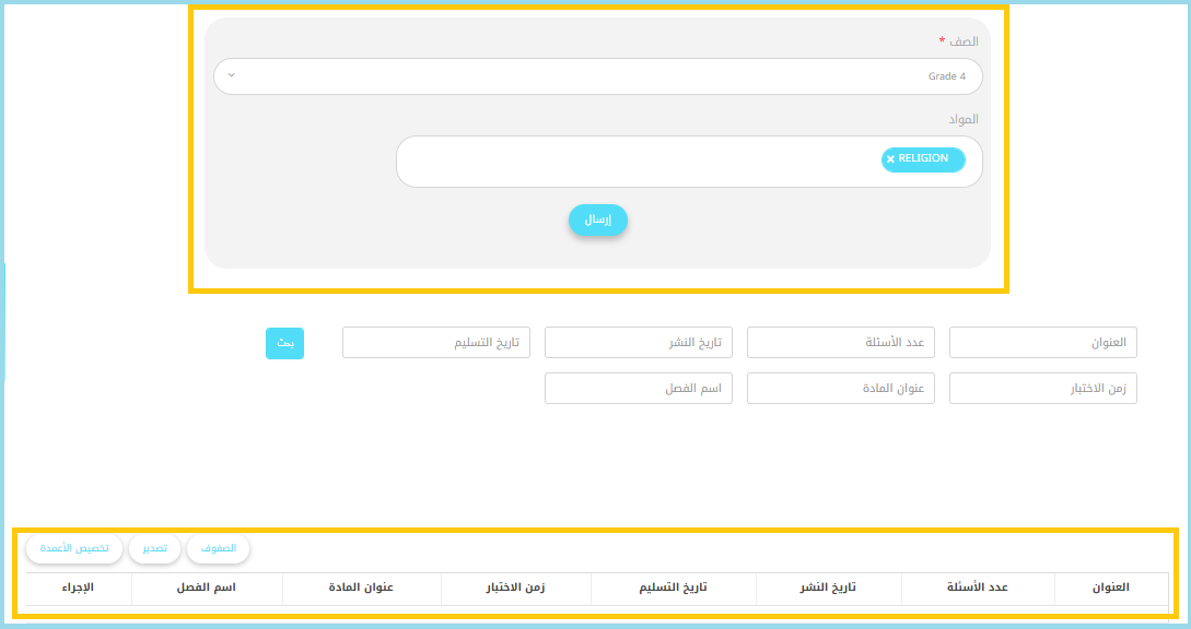 - من القائمة المنسدلة الصف، اختر الصف المطلوب