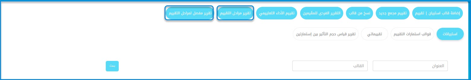 1. الدخول إلى أحد تقارير التقييمات (تقرير مراحل التقييم أو التقرير المفصل لمراحل التقييم).
