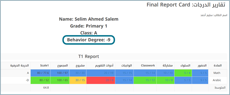 يجب أن ينطبق نفس منطق الحساب هذا على تقرير كشوف الدرجات أيضًا.