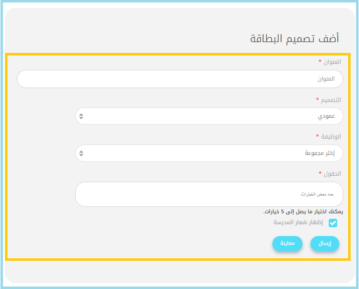 • الوظيفة: اختر الوظيفة الذي تنطبق عليه هذه البطاقة (مثل: طالب، معلم، مشرف).