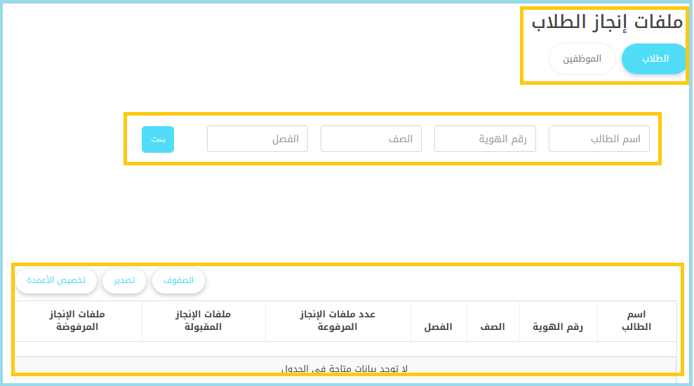 - أثناء عملية المراجعة للطلاب أو المعلمين، يتوفر مرشح المادة للمساعدة في تحسين وإدارة الموافقة أو الرفض على الـ ePortfolios بشكل أكثر كفاءة.