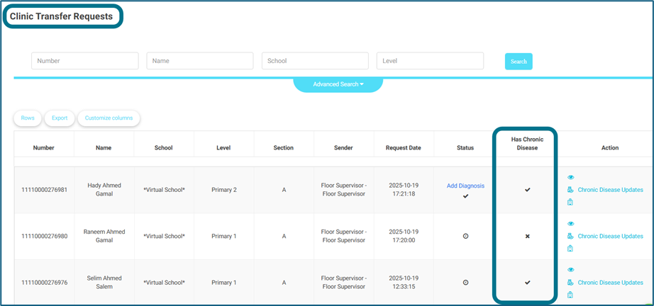 •Chronic Disease indicator should appear in the home page where there are clinic transfer requests.