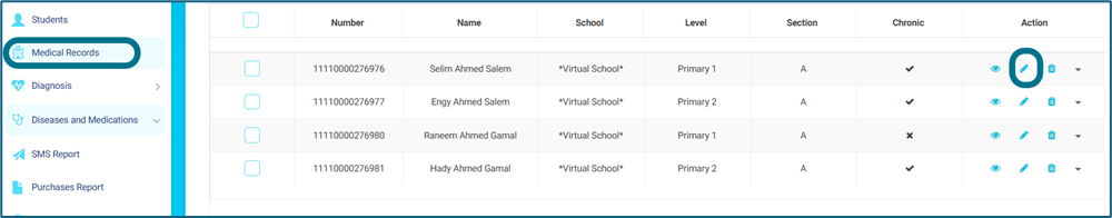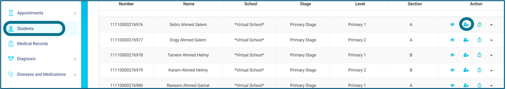 - Clinic officer & Guardian accounts — side menu — students — add medical record for any student.