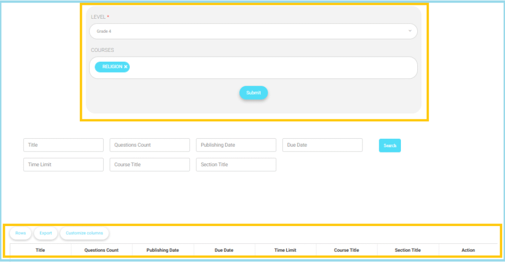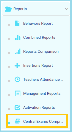 The Central Exams Comprehensive Report allows supervisors to view a complete overview of all central exams across all grade levels and subjects on a single page, enabling easy monitoring and analysis.