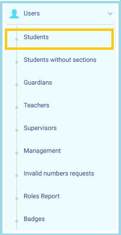 - Click on Students to access the full list of student accounts.