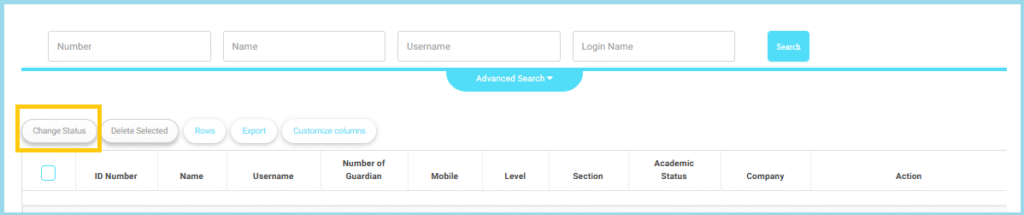 This feature allows the Admin to modify the status of multiple students simultaneously, reducing manual effort and ensuring efficient data management.