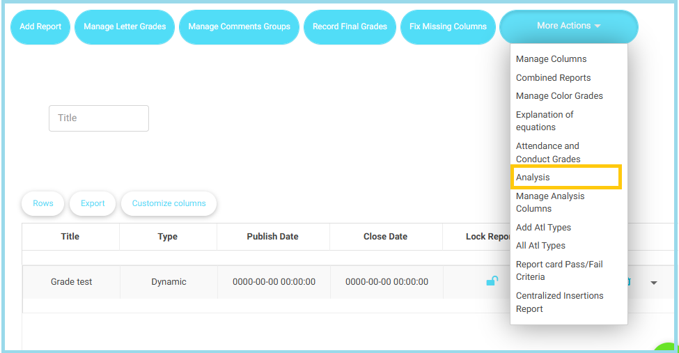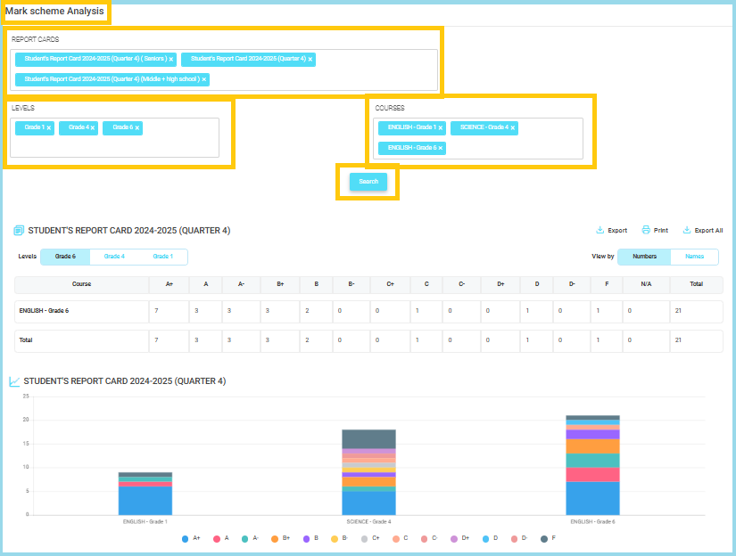 - Select the course(s) you want to analyze (e.g., English – Grade 1, Science – Grade 4).