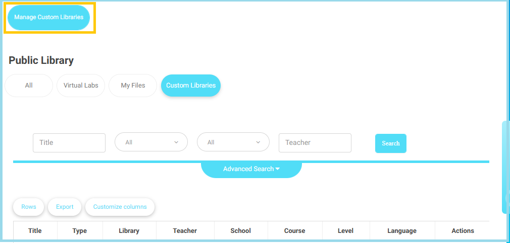 - Click on Custom Libraries to view or manage your personalized library collections.
