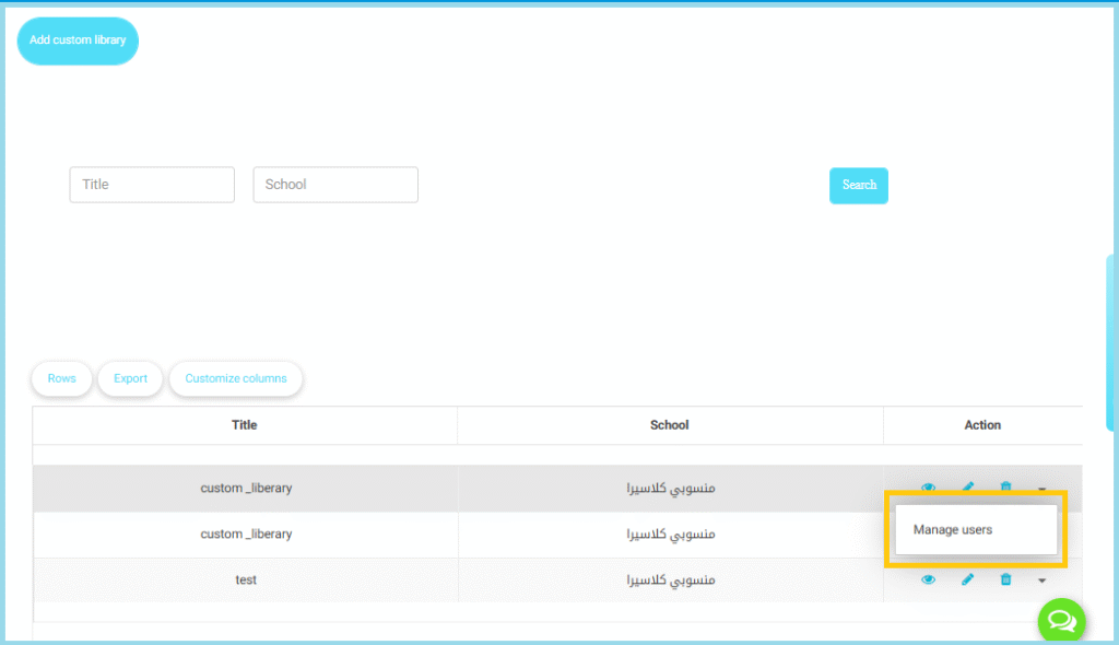 - At the top, select Manage Custom Libraries to open the management dashboard.