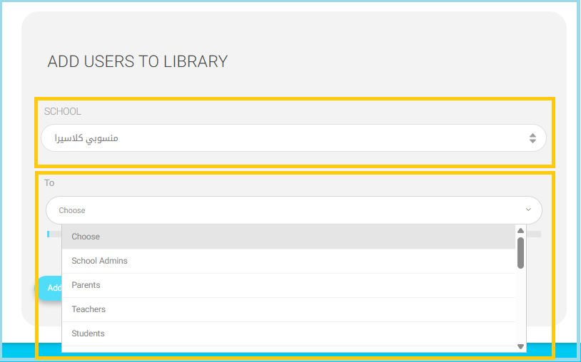 Note: If your account has multi-school access, make sure to choose the correct school to avoid adding users from the wrong institution.