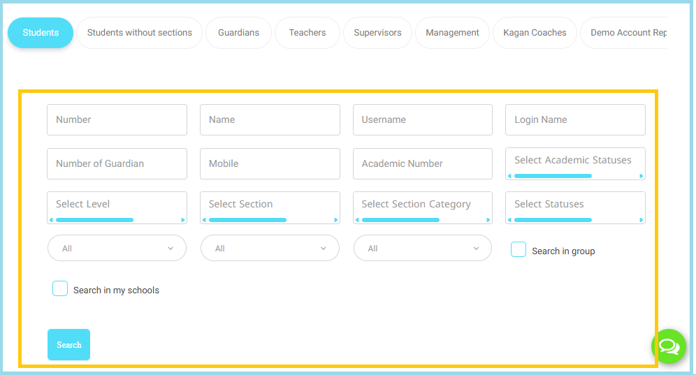 - Only users from the selected school will appear in the next step.