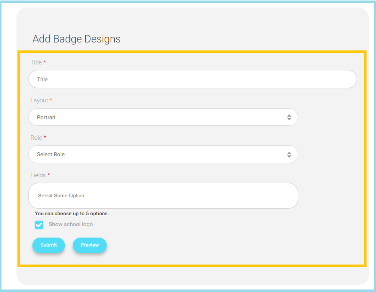 - Fields: Select the information fields to display on the badge.